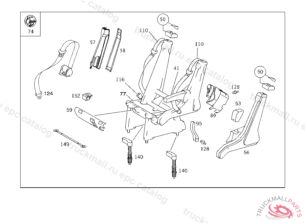 PANELLING SEAT BELT ITEGRATED INTO SEAT RIGHT TO 638 950 06 20, 25 20, 14 20, 29 20,NO.7C52IIIIII I