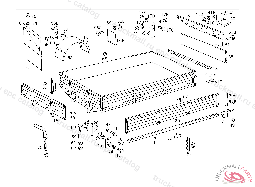 PLATFORM , EXHAUST STOCK OF OLD PARTS NUMBER FIRST UP TO CHASSIS 303411 VEHICLES TARPAULIN FRAME ARE TO BE REWORKED, Replaced By: A3096001821