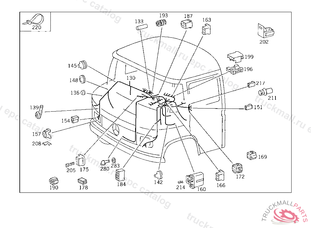 CABLE HARNESS CAB MAIN CABLE HARNESS, FROM IDENT NO. 003884-018153 ALSO INSTALLED ON 018155,018156,018159,018308,018310,018315,018317,018318,018327,018350,018355. EXCEPT FOR 003885,003886,003898,003903,017661,017829
