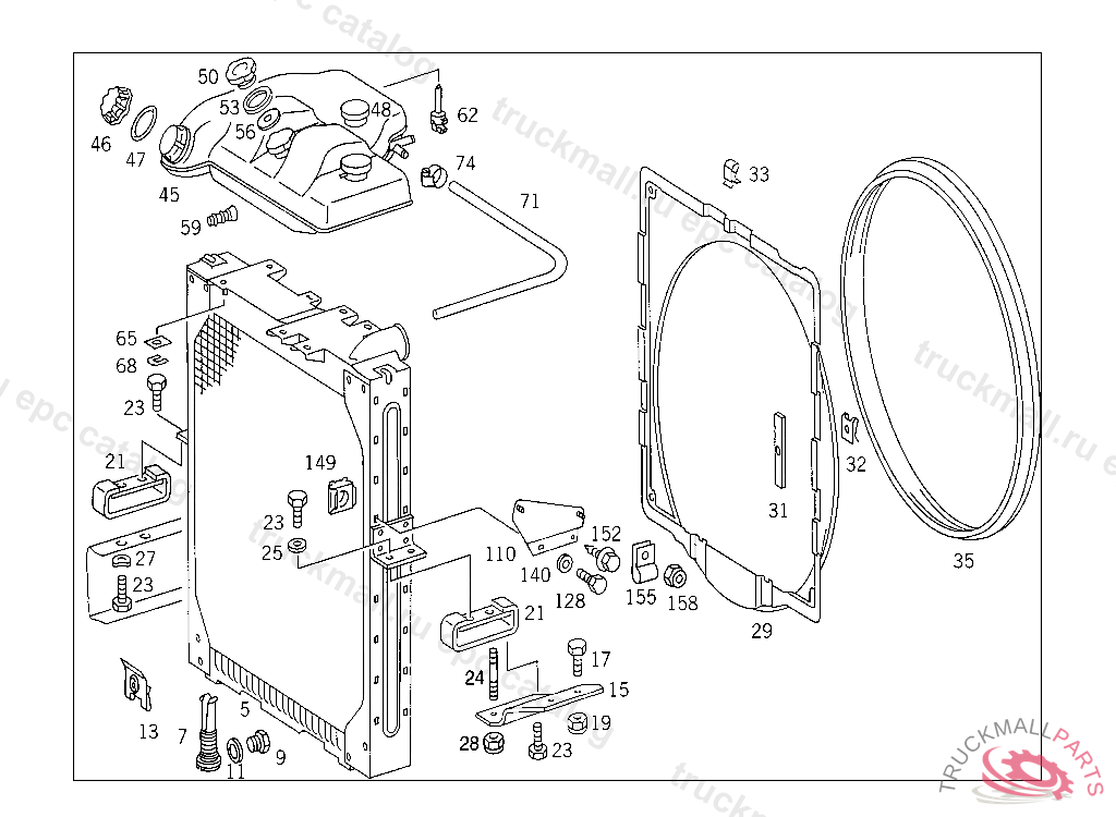 RADIATOR , FIRST EXHAUST STOCK OF OLD PARTS UP TO IDENT NO. 5 752618, Replaced By: A6555002103