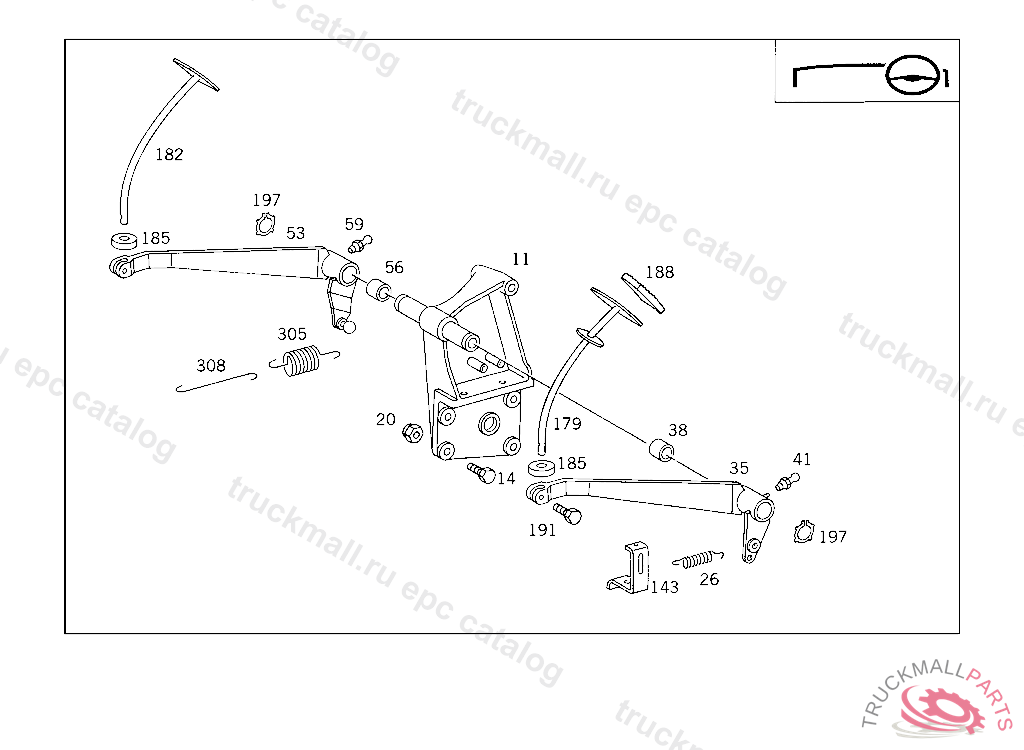 SPRING BRAKE PEDAL RESET, UP TO IDENT NO. 148036 EXCEPT FOR 140555,142078