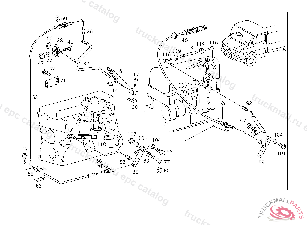 BEARING PEDAL LEVER TO FRONT PANEL, FROM IDENT NO. 941506, P 000001 ALSO INSTALLED ON 899081-941503 ONLY WITH OM601/OM602 ENGINE