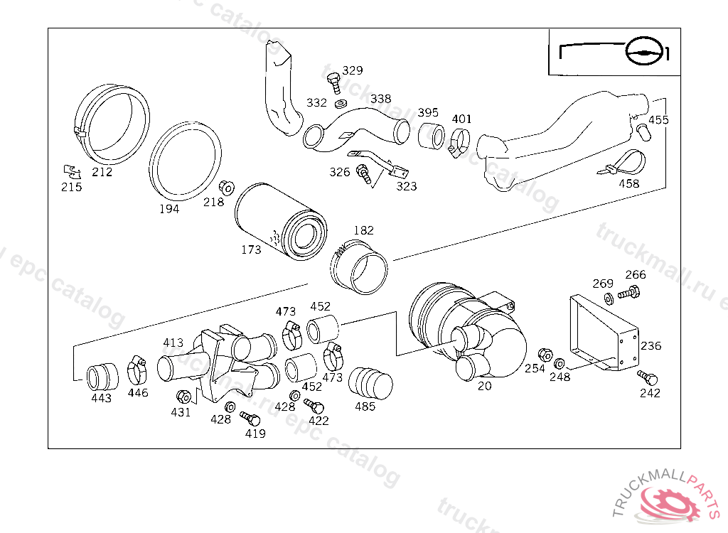 HOSE CLAMP FROM AIR CLEANER TO TRANSVERSE INTAKE PIPE, Replaced By: A0019951910