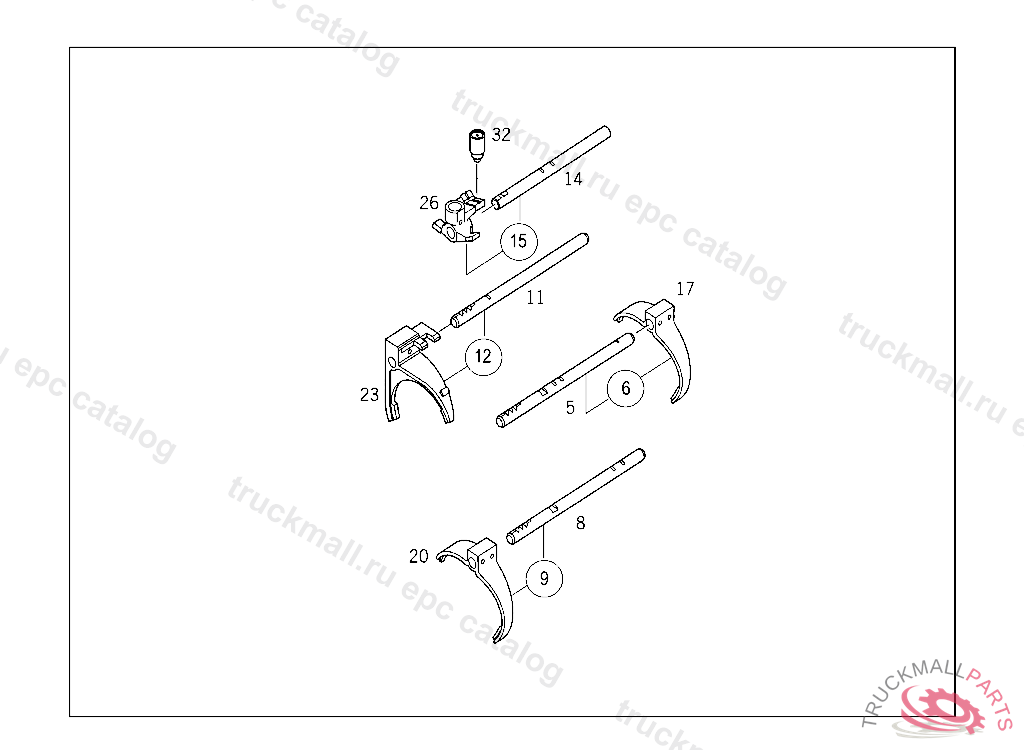 26 712.36 TRANSMISSION - 200 SHIFTING RAILS,SHIFTING FORKS
