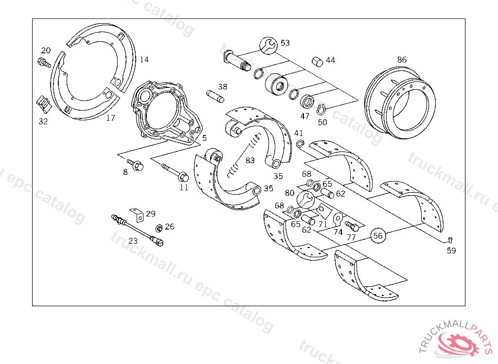 BRAKE SHOE , FIRST EXHAUST STOCK OF OLD PARTS UP TO FRONT AXLE E 128437, Replaced By: A3934202519