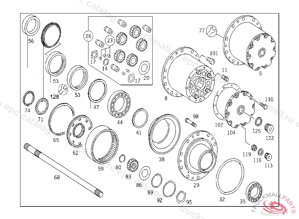 PLANETARY GEARING , FIRST EXHAUST STOCK OF OLD PARTS UP TO REAR AXLE V 477618, Replaced By: A3463504209