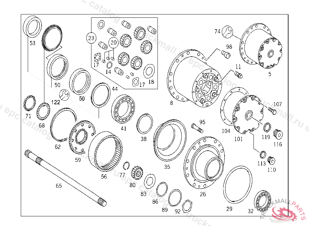 PLANETARY GEARING , FIRST EXHAUST STOCK OF OLD PARTS UP TO REAR AXLE V 477618, Replaced By: A3463504209