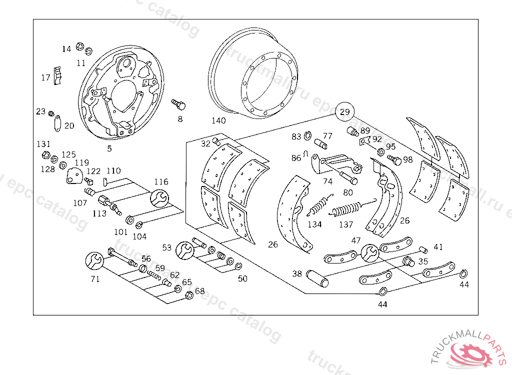 REPAIR KIT BRAKE SHOE SHACKLE, UP TO CHASSIS 910369 ALSO INSTALLED ON 500001-501455,FROM CHASSIS 910370 AND 501456-599999 SEE SPARE PARTS LIST 103
