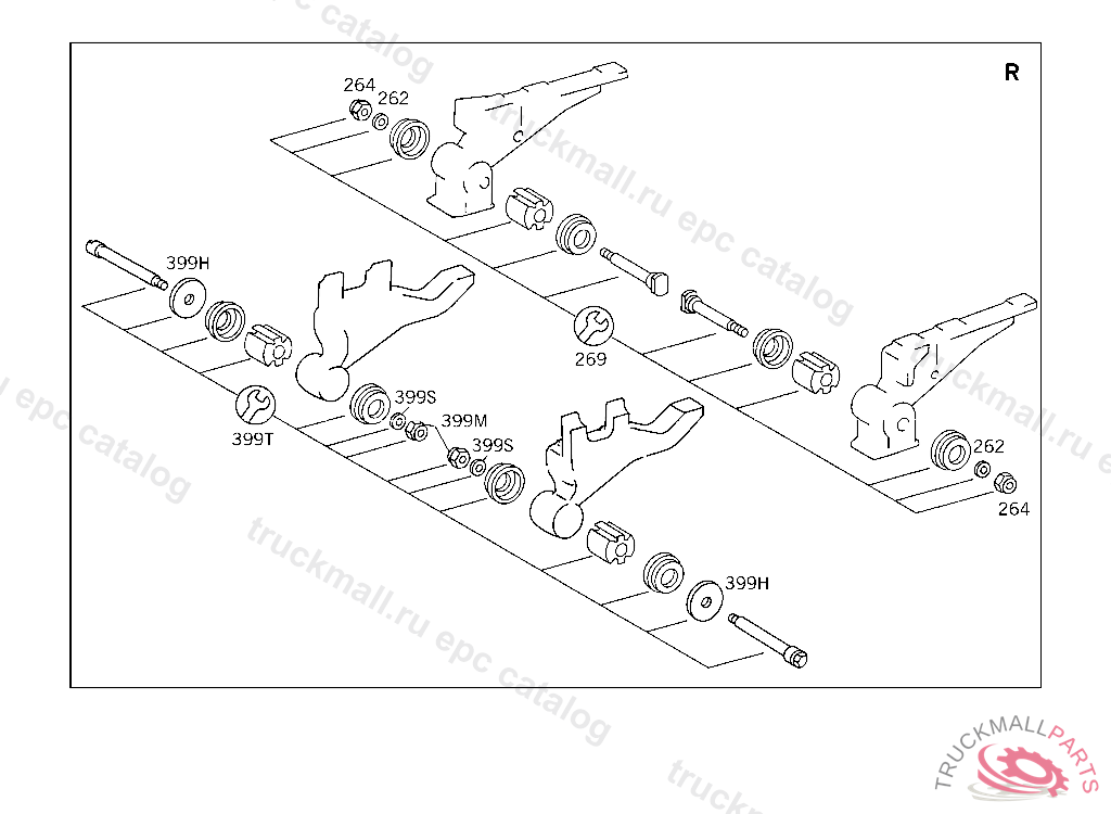 REPAIR KIT CAB SUSPENSION,FRONT, FOR USE WITH SHORT MERCEDES-BENZ CAB5 764324