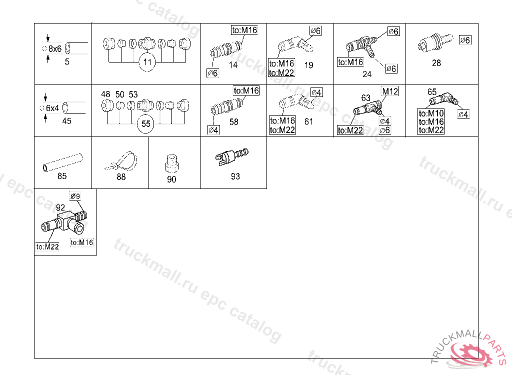 CONNECTION PIECE COMPRESSED-AIR-LINE PLUG-CONNECTION TO M16, 6MM, VOSS 232, Replaced By: A0049976989