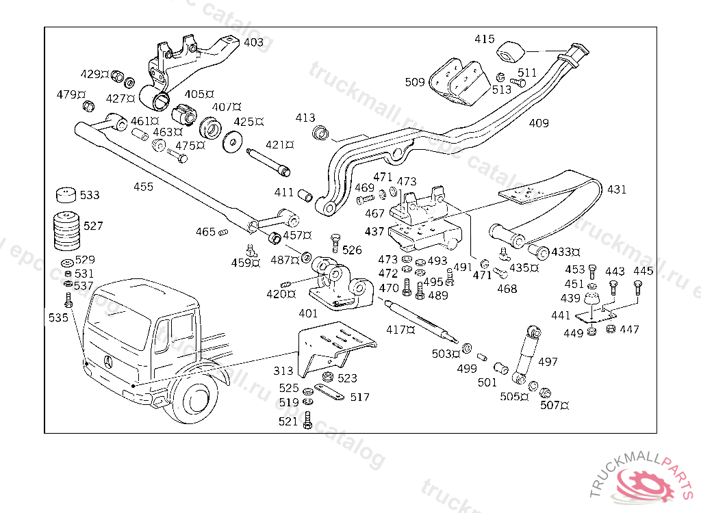 GUIDE CAB SUSPENSION,REAR RIGHT, 385.068,069 ON VEHICLES WITH DB CAB ONLY 385.019 FOR USE WITH SHORT MERCEDES-BENZ CAB5 204965