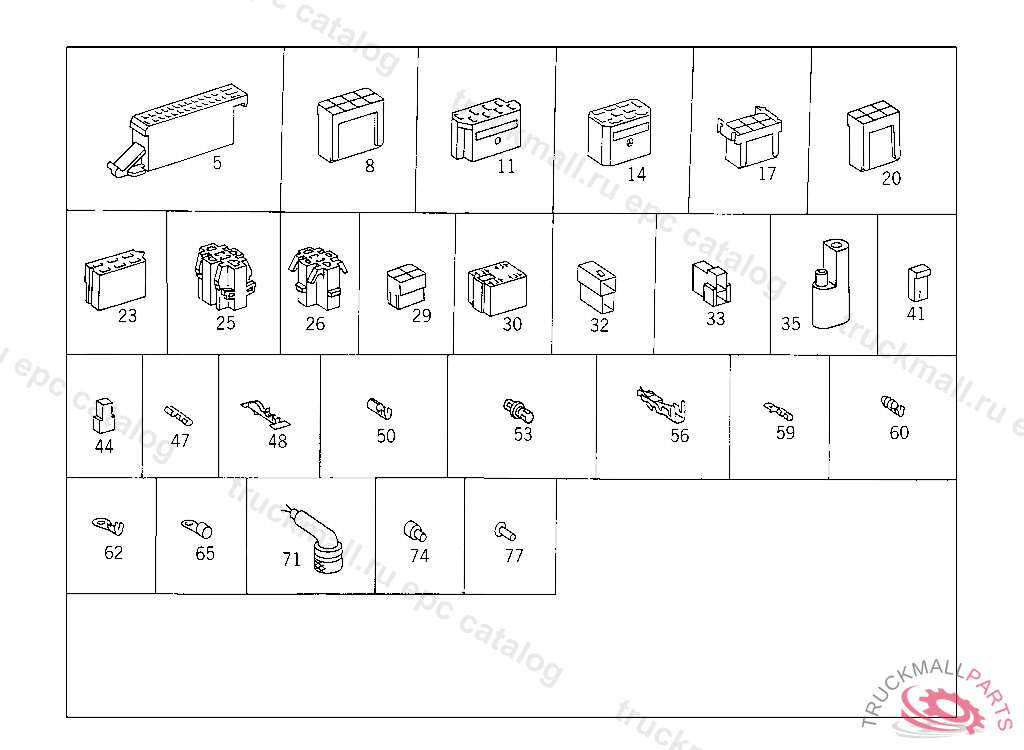 PIN BUSHING HOUSING. PLUG HOUSING FROM CHASSIS/CAB CONNECTION POINT TO TACHOGRAPH