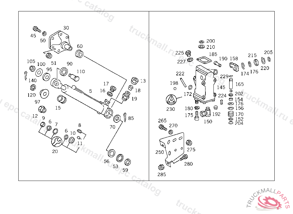 BEARING BRACKET HYDRAULIC CYLINDER, MODEL 415/416/417 FOR USE WITH SHORT CAB MERCEDES BENZ 415 5 014668 416 5 000515 417 4 972023