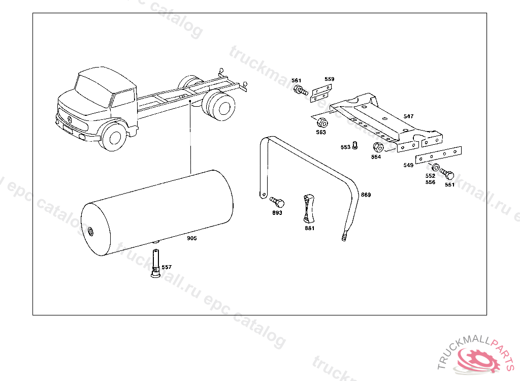 STRAP AIR RESERVOIR TO FRAME, 620.415 UP TO CHASSIS 5 014668 620.416 UP TO CHASSIS 5 000515 620.417 UP TO CHASSIS 4 972023