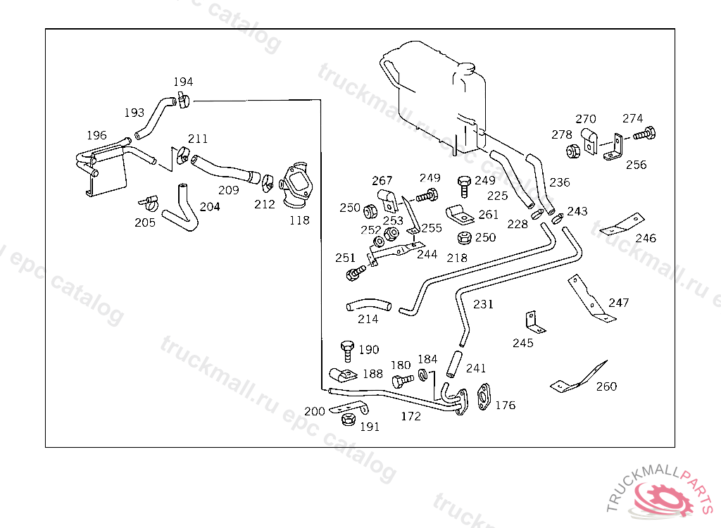 BREATHER PIPE VENTILATION, FROM RADIATOR TO EXPANSION TANK, 415 5 014668 416 5 000515 417 4 972023 FOR USE WITH SHORT MERCEDES-BENZ CAB