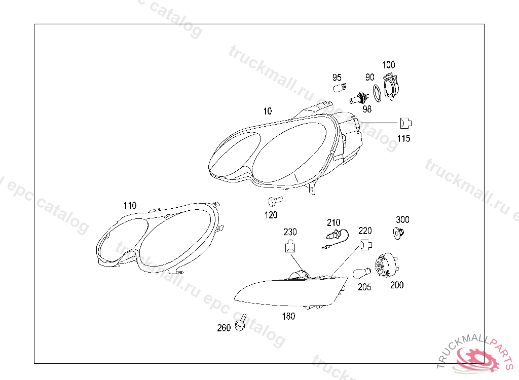 HEADLAMP LEFT, FIRST EXHAUST STOCK OF OLD PARTS UP TO IDENT NO. B 09931020050513, Replaced By: A4545401154