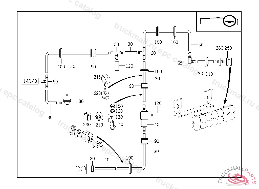 LINE VACUUM LINE, UP TO IDENT NO. 941505 EXCEPT FOR 899081-941503 ONLY WITH OM601/OM602 ENGINE