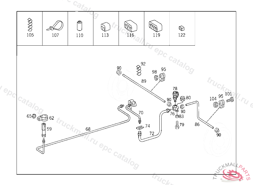 LINE FROM DISTRIBUTOR TO LEFT WHEEL BRAKE CYLINDER, Replaced By: A0004290601