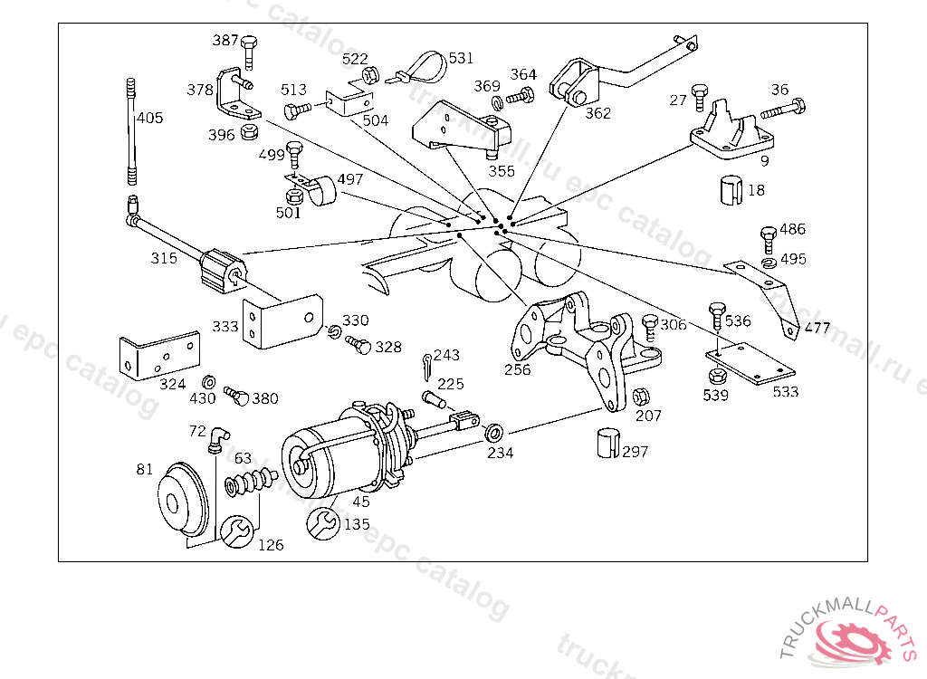 SCREW BEARING BRACKET TO REAR AXLE M 20X60,5 107925