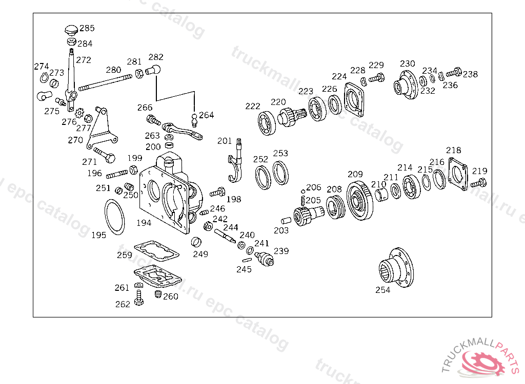 TRANSMISSION AK 6-80(HILL GEAR)1ST SPEED RATIO1:9.0,6TH SPEED RATIO1:1.0, FOR TYPES L-LK-LS 1621/1921 L/LA 1624 FOR COMPONENT PARTS,SEE SPARE PARTS LIST