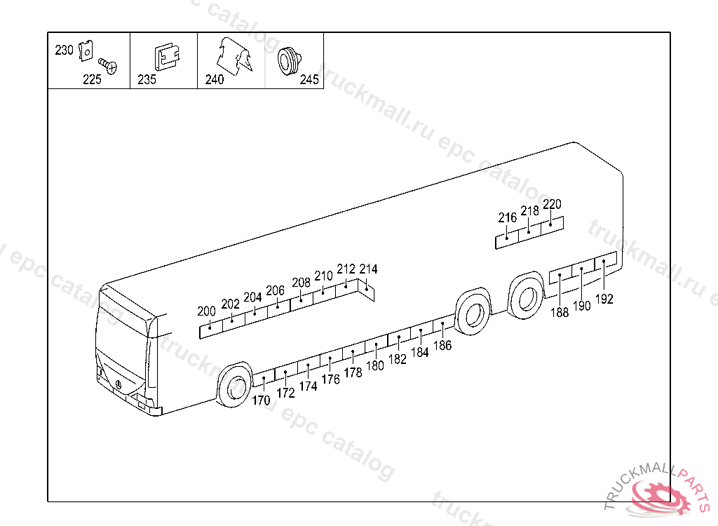 PANELLING RIGHT, BETWEEN THE AXLES 621 MM