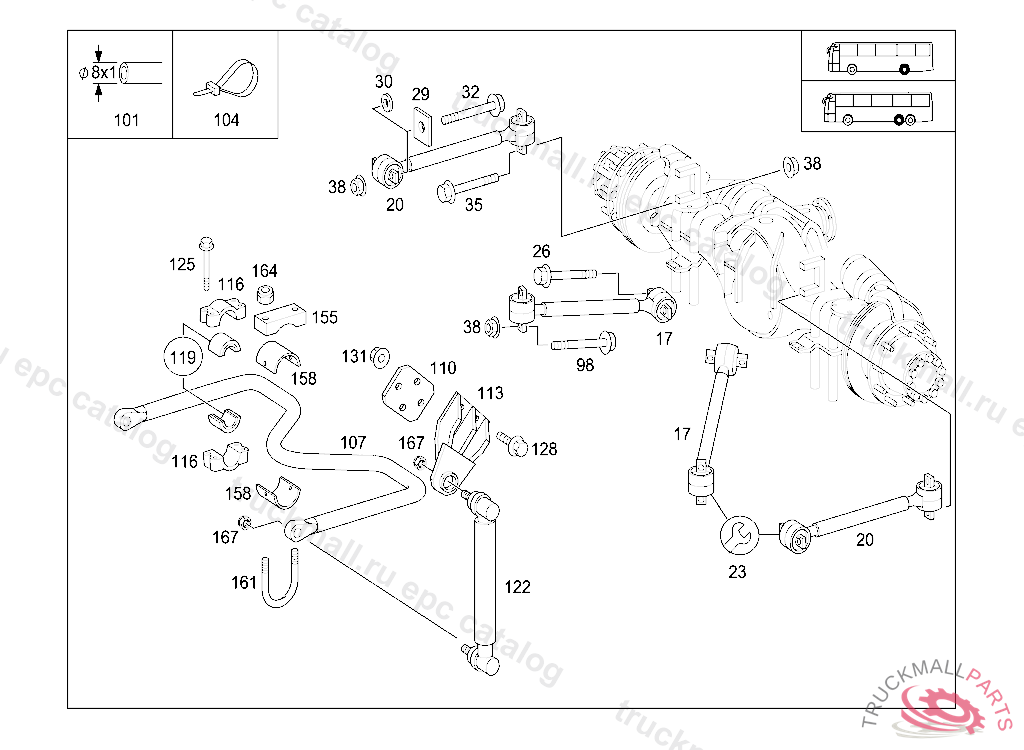 TRANSVERSE CONTROL ARM TO AXLE AN TO FRAME