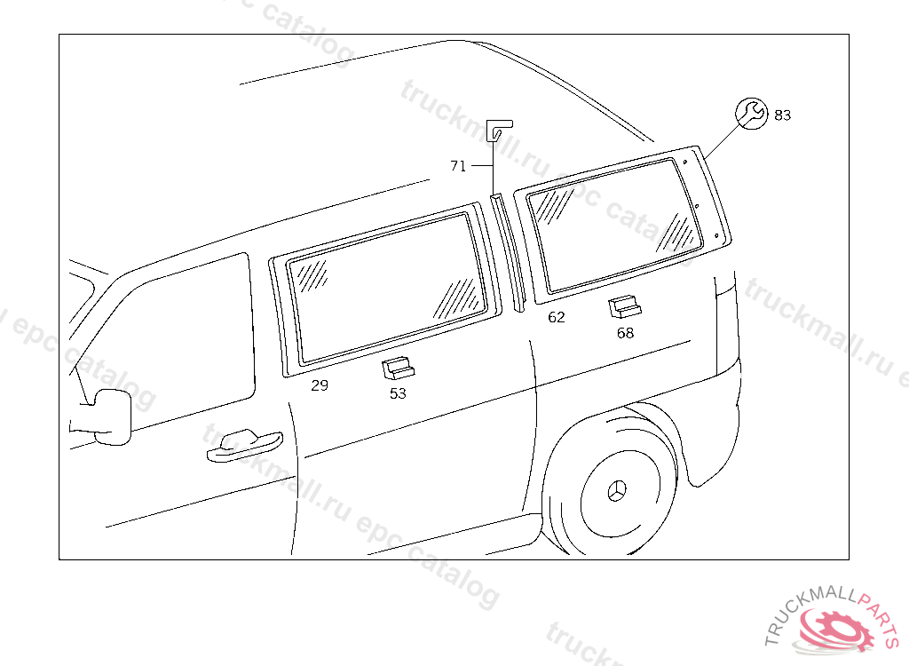 GLASS PANE RIGHT, COLORLESS, ORDER ADDITIONALLY: 1X 638 671 00 36