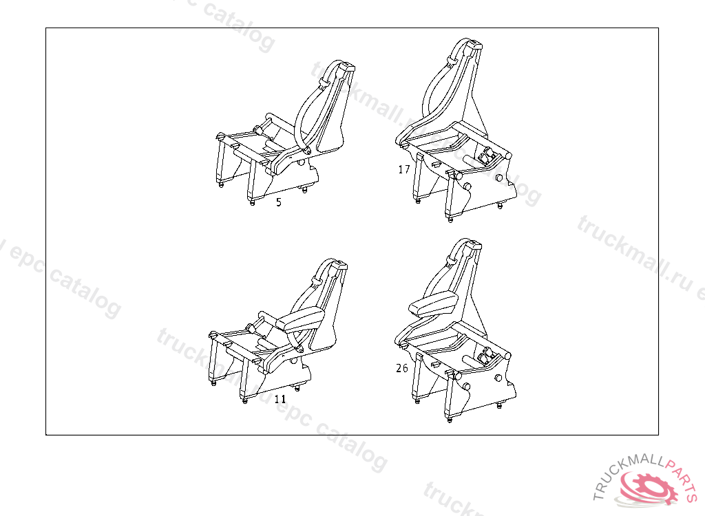 SEAT FRAMEWORK RIGHT SEAT WITH ARMREST,102169 II NO.7C52I NO.7D27IIIII