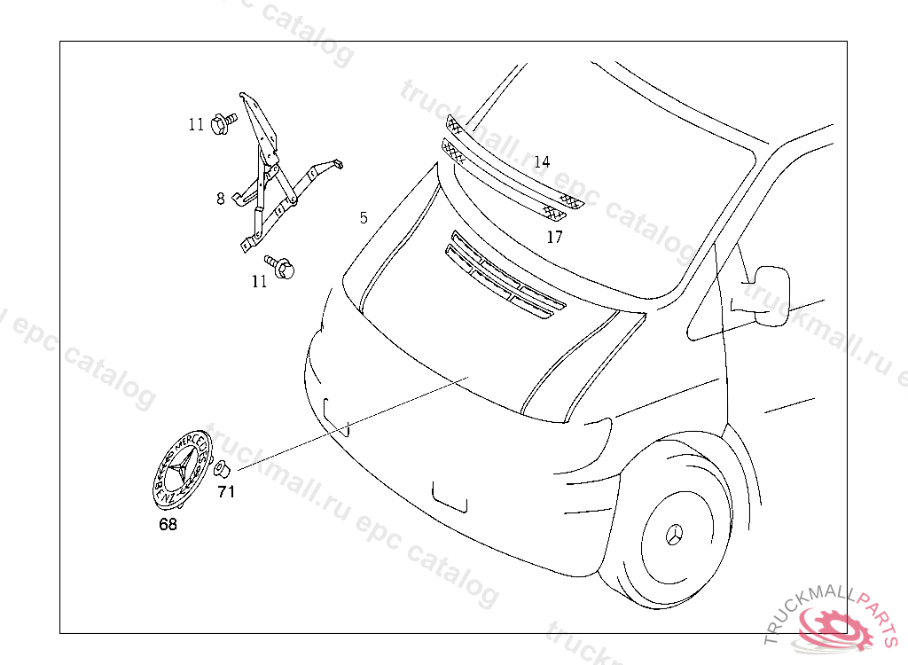 FLAP ENGINE HOOD, UP TO IDENT NO.:132 903 ORDER ADDITIONALLY ALSO 638 682 12 60 AND 638 831 01 05