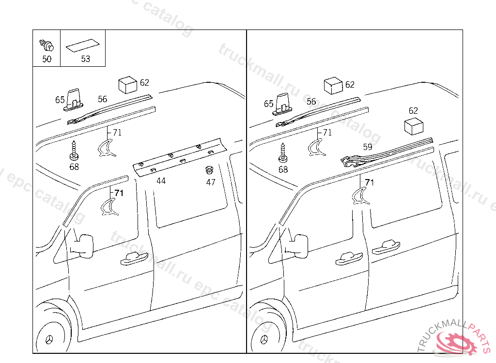 VITO 108 CDI, 110 CDI 112 CDI, 113, 114 - 638.094 FROM IDENT-NR. 246706 - 69 SIDE PANELLING/HEADLINER/ATTACHMENT