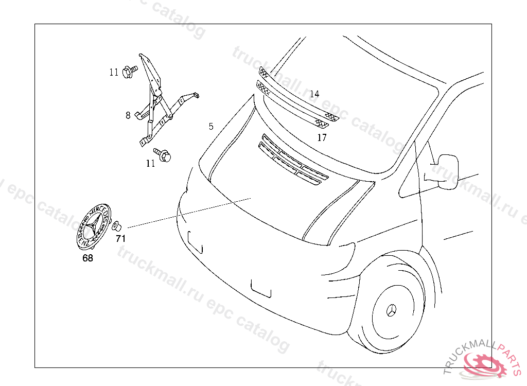 FLAP ENGINE HOOD, UP TO IDENT NO.:132 903 ORDER ADDITIONALLY ALSO 638 682 12 60 AND 638 831 01 05