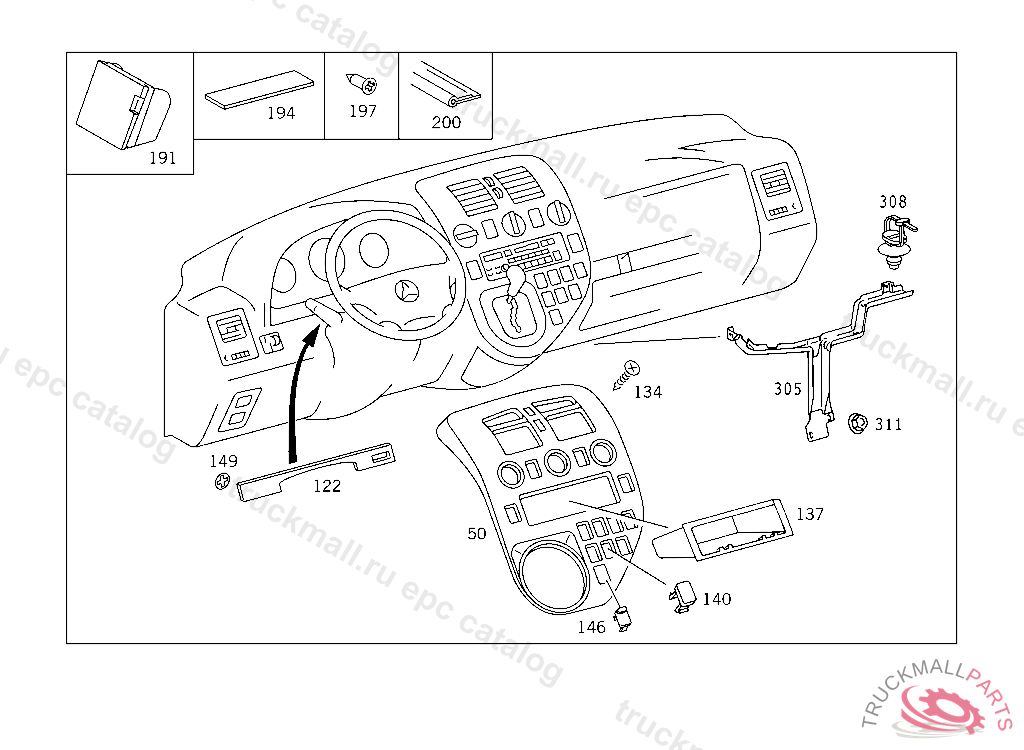 V 200 CDI, V 220 CDI, V 200, V 230, V 280 - 638.294 FROM IDENT-NR. 246706 - 68 INSTRUMENT PANEL/LINING