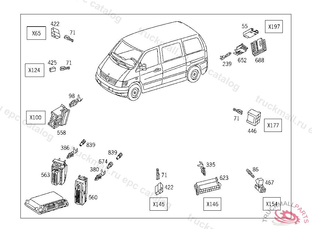 CONTACT CARRIER. PLUG HOUSING GEAR RECOGNITION SWITCH, A 698507 X 012425 EXCEPT CODE 809 ALSO INSTALLED IN VEHICLE FROM A 698508, X 012426 WITH CODE 808