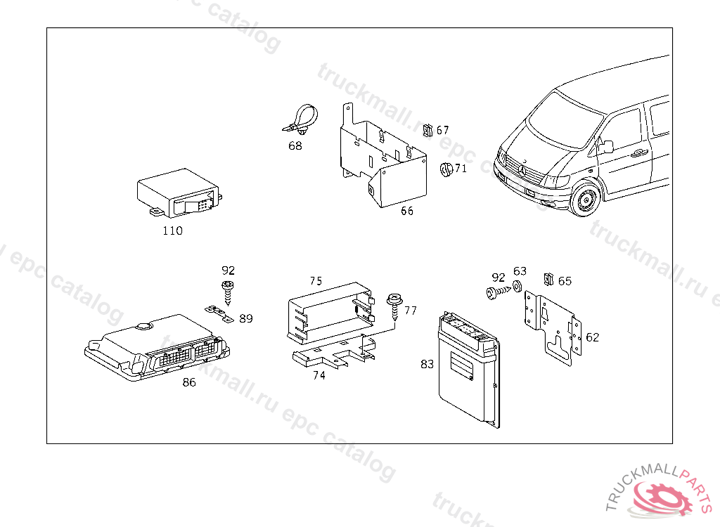 CLIP CONTROL UNIT TO BRACKET, A 436535 F 483847 EXCEPT CODE 807 ALSO INSTALLED IN VEHICLE FROM A 436536, F 483848 WITH CODE 806