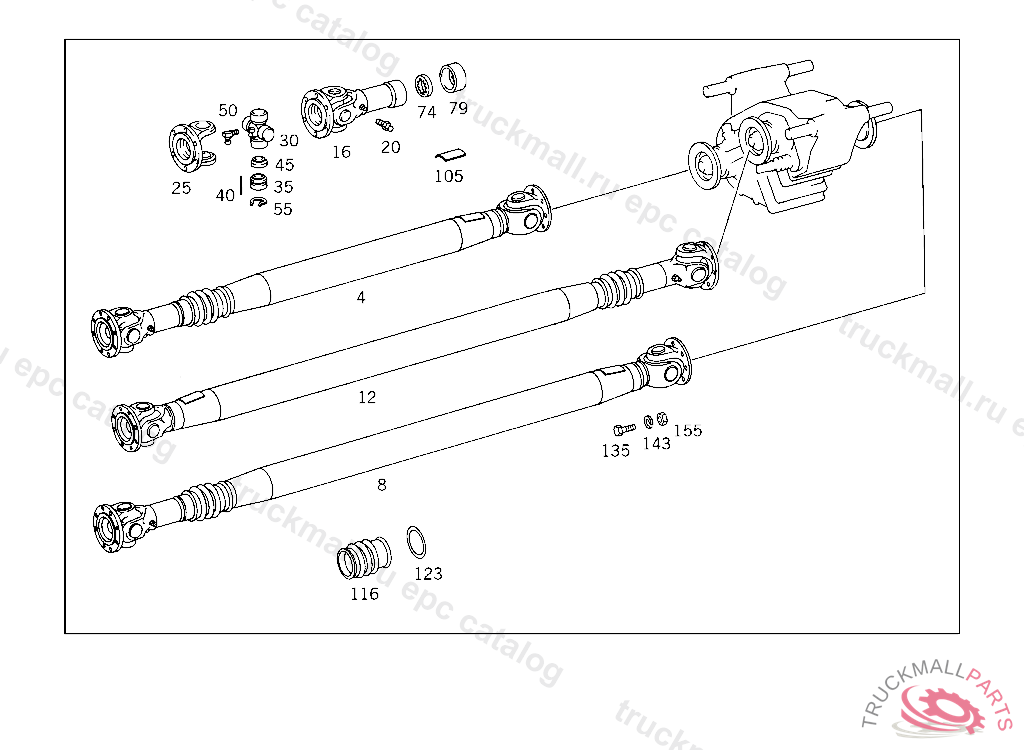 PROPELLER SHAFT FROM TRANSFER CASE TO REAR AXLE 1420 MM,4 477511