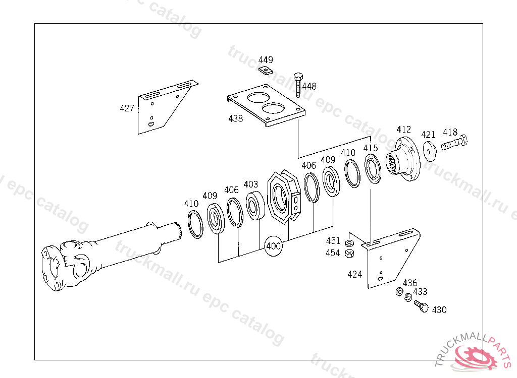 PROTECTIVE CAP FOLLOWER FLANGE, INTERMEDIATE BEARING, BALL BEARING IN RUBBER SEAT