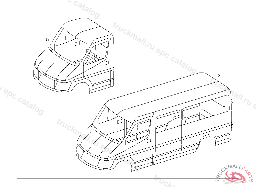 BODY SHELL DELIVERY VAN, STATE IDENT NO. WHEN ORDERING NOT USED