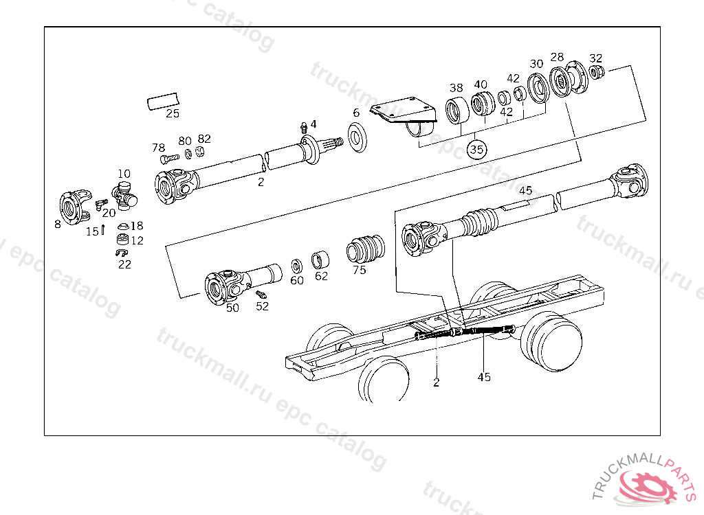 PROPELLER SHAFT FROM INTERMEDIATE BEARING TO REAR AXLE L1790 MM, PART IS ONLY OR ALSO SUPPLIED AS RECONDITIONED PART