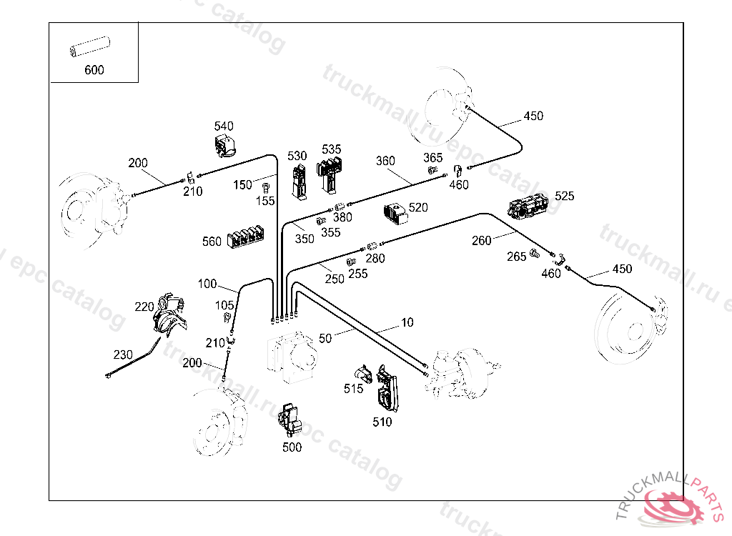 LINE FROM PRESSURE RETAINING VALVE TO LEFT REAR BRAKE HOSE 2655 MM
