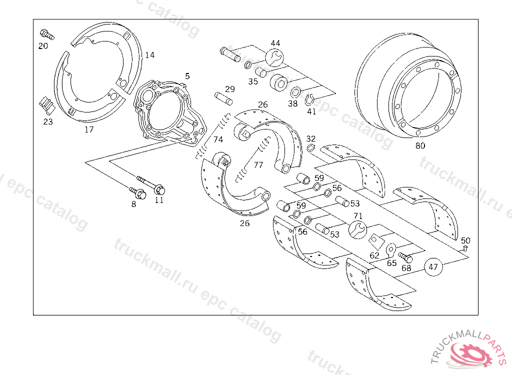 BRAKE SHOE , FIRST EXHAUST STOCK OF OLD PARTS UP TO FRONT AXLE E 128437, Replaced By: A3934202519