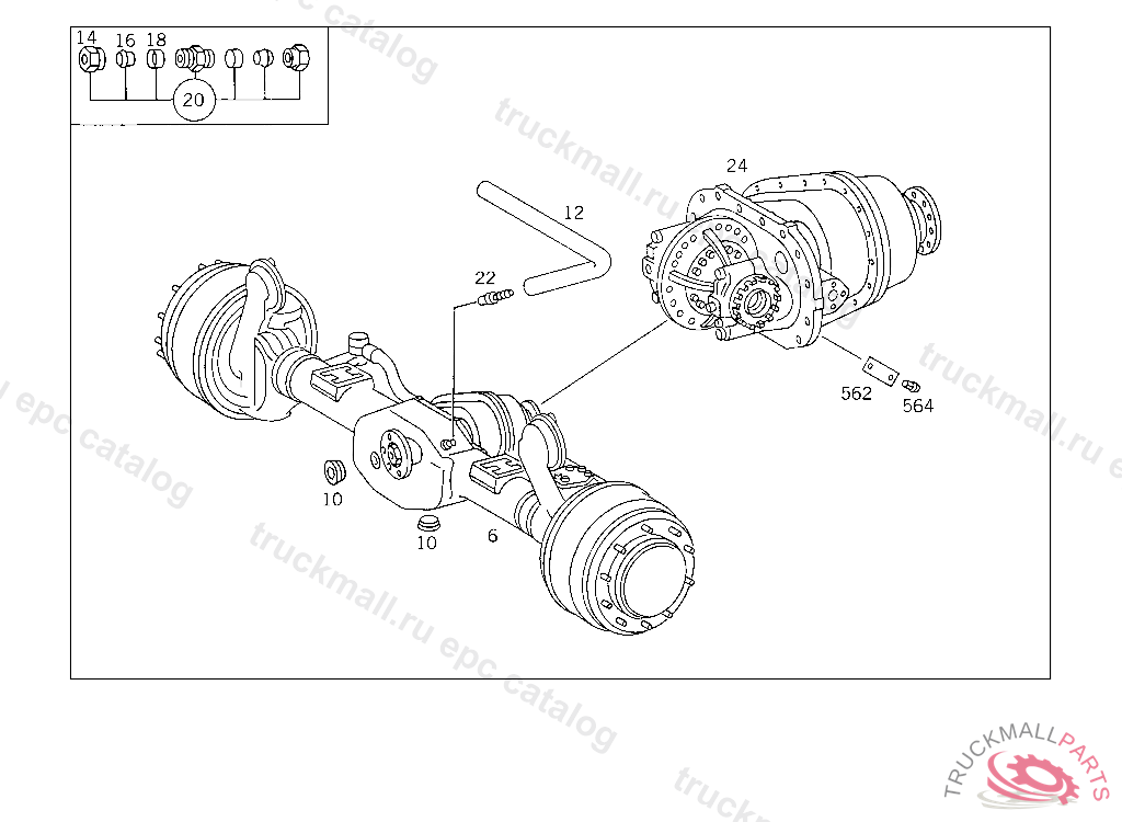AXLE HOUSING WITH DIFFERENTIAL GEAR,RATIO: 29:24, MAN AXLE