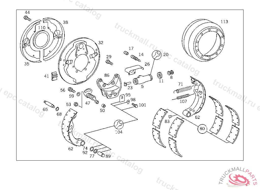 BRAKE SHOE , EXHAUST STOCK OF OLD PARTS NUMBER FIRST UP TO FRON AXLE D 027673,E 092867,G 009579, Replaced By: A3854201719