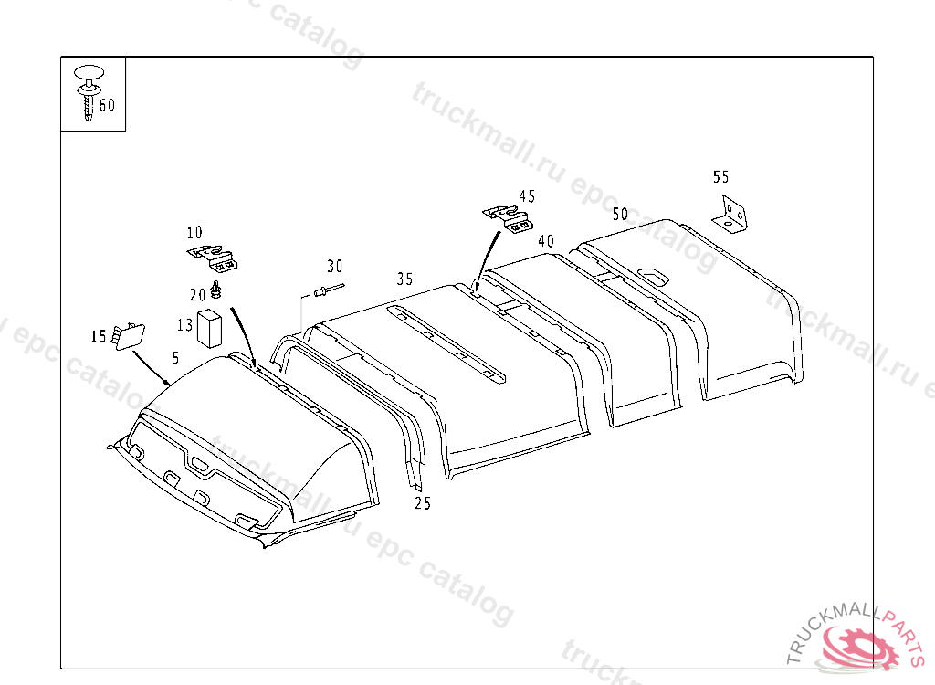 HEADLINER WITHOUT LOAD COMPARTMENT SLIDING DOOR. WITH GLASS TILTING ROOF, TO BE ADAPTED DURING ASSEMBLY