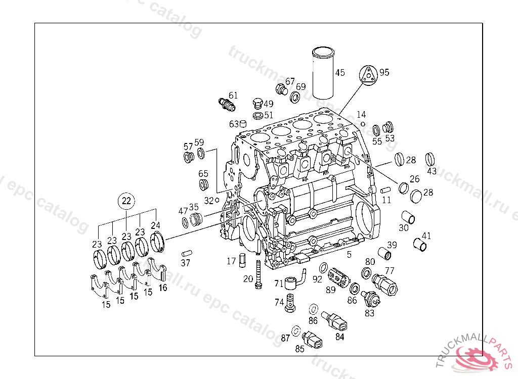 CRANKCASE , UP TO ENGINE 108128 ORDER ADDITIONALLY: 4X INJECTION PUMP, 5X MAIN BEARING PARTS KIT, 1X CYL. HEAD UP TO ENGINE 185256 ORDER ADDITIONALLY: 5X MAIN BEARING PARTS KIT, 1X CYL. HEAD UP TO ENGINE 301570 ORDER ADDITIONALLY: CYLINDERHEAD