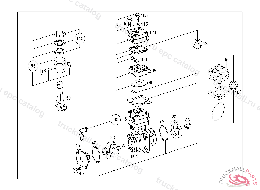 COMPRESSOR ONE-CYLINDER WABCO 238CCM,*0458231, Replaced By: A9061305415