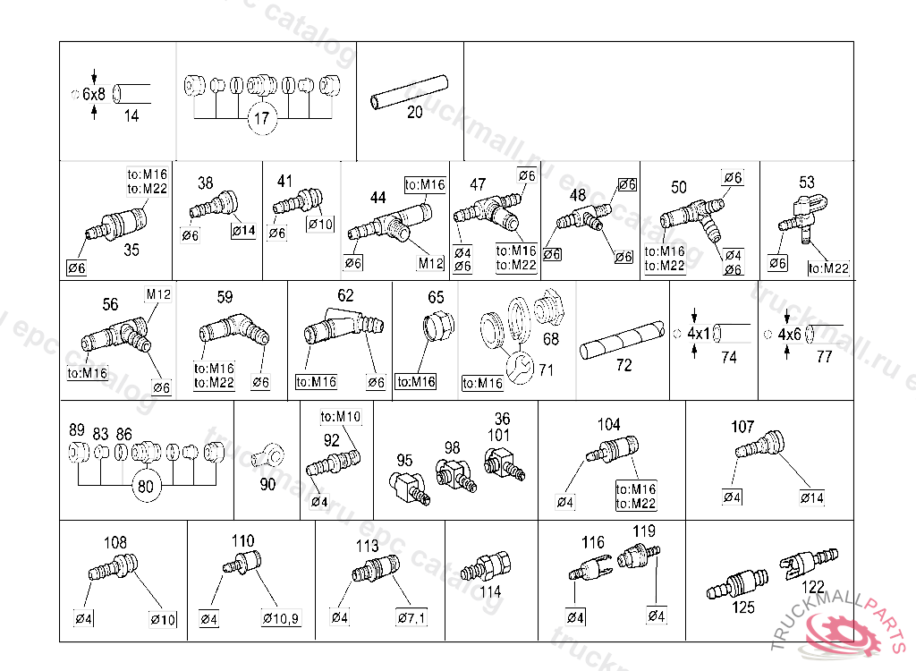 CONNECTION PIECE COMPRESSED-AIR-LINE PLUG-CONNECTION TO M16, 6MM, VOSS 232, Replaced By: A0049976989
