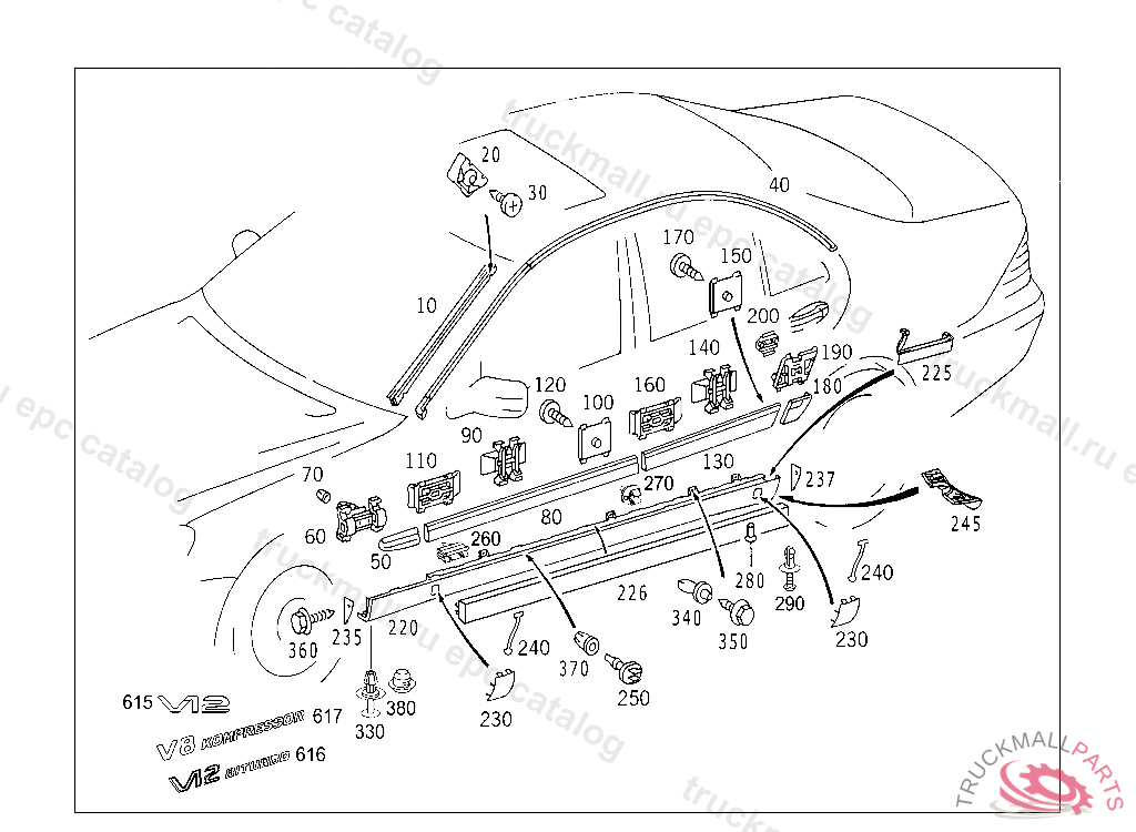 CLIP PROTECTIVE TRIM ON DRIVER DOOR, LEFT, A 97499920070630809 E 06000020080801809