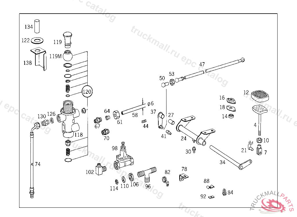 BRAKE PEDAL , 032,033,040,041,132,133,140,141 FROM ENGINE 031700 040,041,140 UP TO CHASSIS 085315 344.141 LESS SUPERCHARGING SYSTEM UP TO CHASSIS 031699 ON LK 1113 WITH CAB 814 FROM CHASSIS 12326709
