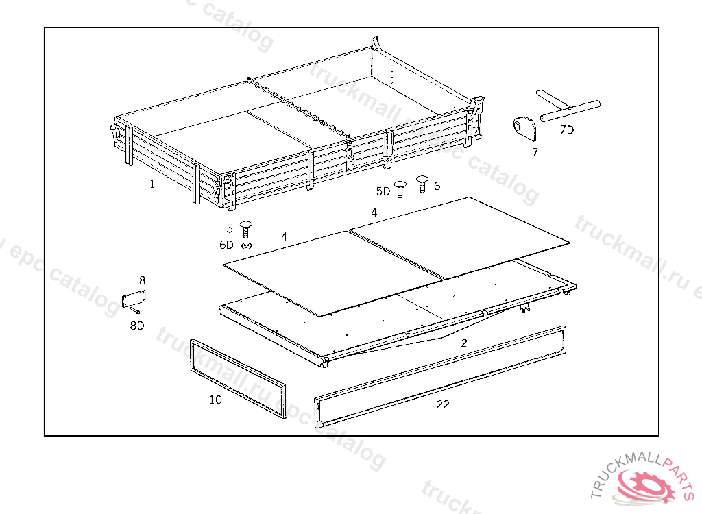 PLATFORM COMPLETE,WITH TENSION CHAIN AND SUBSTRUCTURE,LOADING SPACE,3.6X2.24X0.5M, FROM IDENT N.715567 ALSO INSTALLED ON 500001-599999,DUMPING PLATFORM COMPONENT PARTS,SPARE WHEEL MOUNTING,SHOULD BE ORDERED FR OM MESSRS.F.X.MEILLER