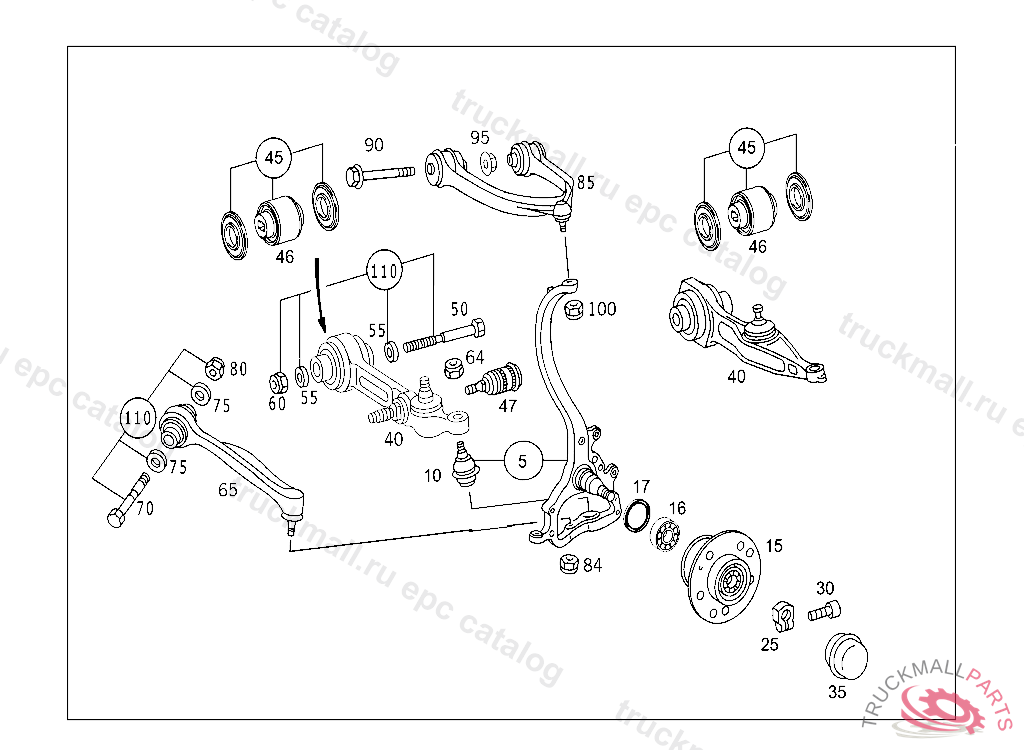 SPRING CONTROL ARM BOTTOM LEFT & RIGHT, THE OLD PART MUST NO LONGER BE INSTALLED, Replaced By: A2153300607